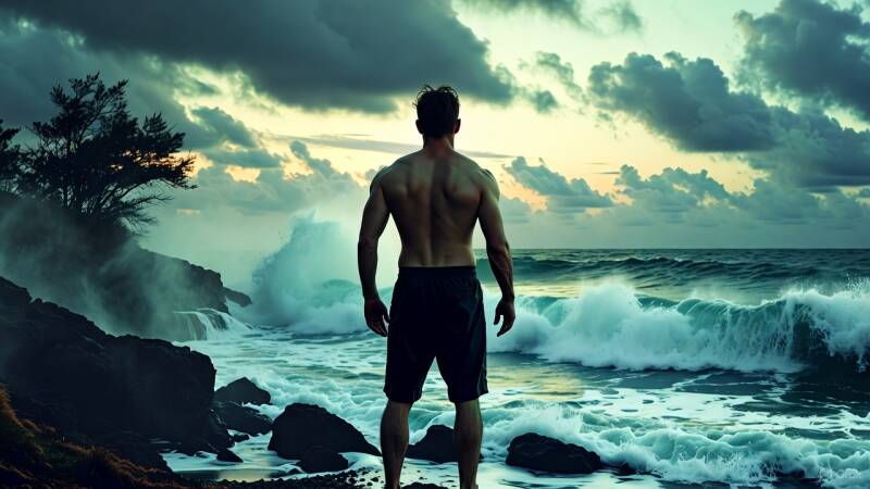 Out past the breakers, where salt wind cuts and the tide don’t ask permission, he stood. Boots planted. Jaw set. Storm-tested.