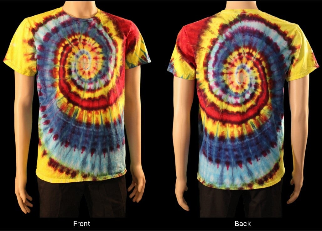 This ain’t just a shirt—it’s a mark. A medium-weight Gildan, 100% cotton, 4.3 oz of breathable grit. Spiraled red, yellow, and blue ice-dye runs like memory through fabric—fire at the edges, clarity in the core. Crew neck. Short sleeve. Built for movement, made for heat. Fits best on a 38”-40” chest unless you like a little looseness in the lesson. The vortex pattern doesn’t just catch eyes—it filters chaos, lets the new roll in clean.